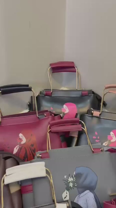 Upgrade your everyday style with this elegant women’s handbag set designed for both fashion and functionality. The main tote bag features a beautiful artistic print on a rich maroon base, paired with sturdy gold-tone metal handles and a comfortable grip. Crafted from premium PU leather, this handbag offers durability, smooth texture, and a classy finish.